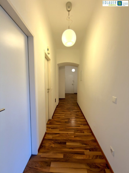 Die Wohnung besitzt eine Wohnfläche von ca. 64,03 m² und befindet sich im 1. Obergeschoß. Das geräumige Wohnzimmer mit der angrenzenden offenen Kochnische verleiht der Wohnung ein modernes Flair und bietet zudem unzählige Gestaltungs- und Einrichtungsmöglichkeiten. Auch die Tatsache, dass alle Räume einzeln über das Vorzimmer zu begehen sind wirkt sich durchaus positiv aus. Für entsprechende Ruhe auch bei geöffnetem Fenster sorgt das hofseitige Schlafzimmer. Das Badezimmer wurde in schlichtem Weiß gehalten und lässt sich somit individuell einrichten. Ausreichend Stauraum bietet der ca. 3 m² große Abstellraum.