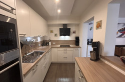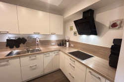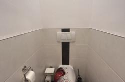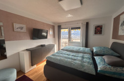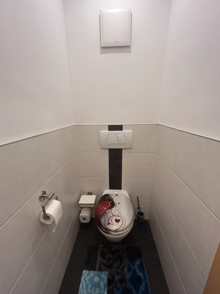 Das Badezimmer präsentiert sich großzügig und hochwertig: eine große Dusche, eine komfortable Trapezbadewanne und das integrierte WC bieten Raum für Entspannung. Ergänzt wird dies durch ein separates Gäste-WC mit Handwaschbecken, das 2021 modernisiert wurde – ein Detail, das im Alltag besonders geschätzt wird.