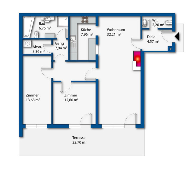 - Großzügige Südterrasse mit ca. 22,7 m²