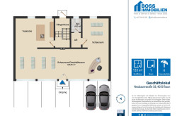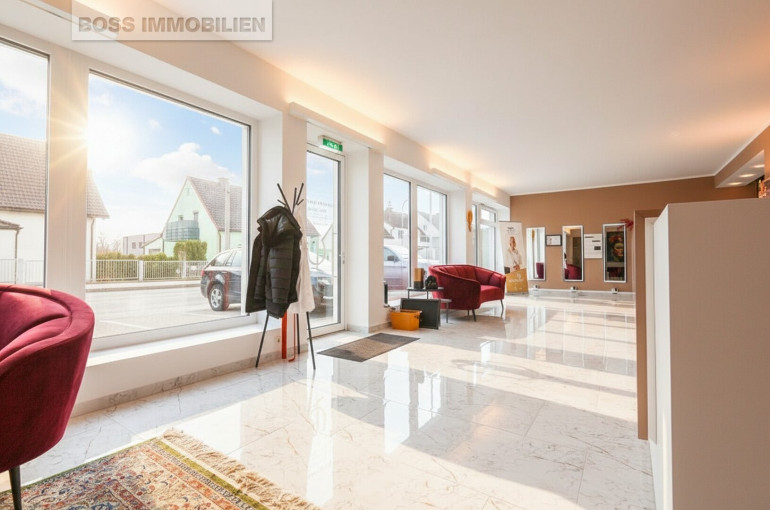 Auf rund 132 m² Nutzfläche eröffnet sich Ihnen viel Gestaltungsspielraum. Die Fläche lässt sich flexibel an Ihre Bedürfnisse anpassen und bei Bedarf auch verändern. Besonders ins Auge fallen die großen Fensterfronten mit einer Gesamtlänge von etwa 13 Metern – ideal, um Ihre Produkte oder Dienstleistungen wirkungsvoll in Szene zu setzen und maximale Sichtbarkeit zu schaffen.