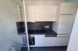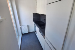 - schönes großes Wohnzimmer mit integrierter Küche teilmöbliert - diese ist räumlich auch vom Hauptraum etwas separiert - von hier aus ist dann auch der Balkon zu begehen (Küche einzeilig möbliert mit Kühlschrank mit Gefrierfach sowie mit Geschirrspüler).