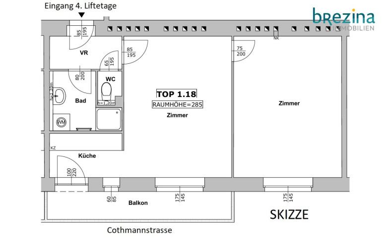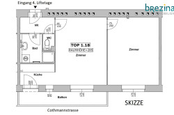 Gassenseitig; Cothmannstraße (12, Untermeidling), benannt (28. November 1905 Stadtrat) nach dem k. k. Hofkriegsagenten Martin Conrad Edler von Cothmann (1685-1759), der 1.300 Gulden für den Meidlinger Kirchenbau gestiftet hat.Beschreibung der Immobilie
