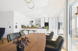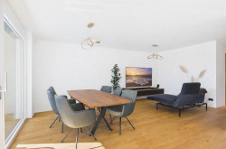 Genießen Sie das helle und freundliche Wohnambiente mit einer modernen Wohnküche, die zum gemeinsamen Kochen und Verweilen einlädt. Die offene Gestaltung schafft eine einladende Atmosphäre, die perfekt für Familien oder Paare ist. Hochwertige Parkett- und Fliesenböden sorgen für ein angenehmes Wohngefühl, ergänzt durch eine energiesparende Fußbodenheizung, die für wohlige Wärme an kalten Tagen sorgt.
