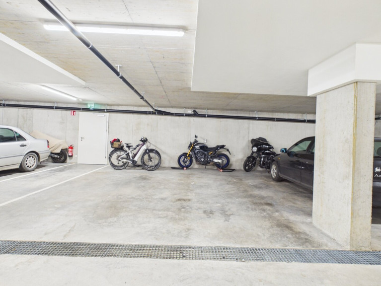 Fliesen, Parkett, Fußbodenheizung, Wohnküche / offene Küche, Personenaufzug, Südbalkon, Bad mit Fenster, Badewanne, Dusche, Kabel/Satelliten-TV, Tiefgarage