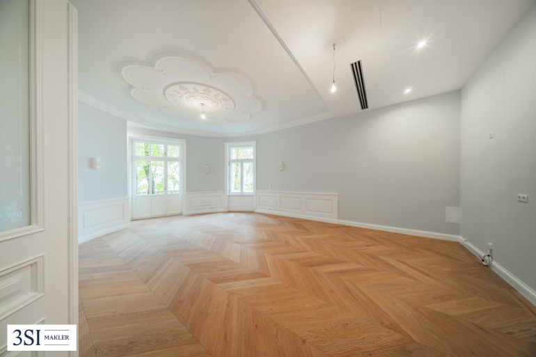 - Französisches Fischgrätparkett, prachtvolle Stuckleisten, traditionelle Kastenfenster mit Laibungen, hohe Türen im Alt-Wien Stil