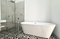 Zwei ruhige Schlafzimmer bieten ideale Rückzugsorte. Das stilvoll ausgestattete Badezimmer mit bodenebener Dusche, hochwertigen Armaturen und elektrischem Handtuchheizkörper erfüllt höchste Ansprüche an Design und Funktionalität. Ein separates WC, Garderobenbereich sowie ein praktischer Abstellraum sorgen für perfekte Alltagstauglichkeit.