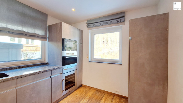 Vom zentralen Vorraum im Erdgeschoss erreichen Sie alle Räumlichkeiten. Die Küche wurde in einen separaten Raum verlegt, wodurch mehr Platzangebot im Wohnbereich entstanden ist. Hobbyköche/innen werden von der neuwertigen Küche der Marke "LEICHT" mit Steinarbeitsplatte und hochwertigen Markengeräten begeistert sein, hier lassen sich Gaumenfreuden zaubern. Im Eingangsbereich ist auf dieser Ebene noch ein WC für Gäste vorhanden.