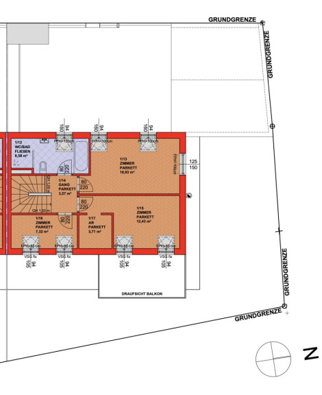 - ein weiteres 16,93 m2 großes Schlafzimmer