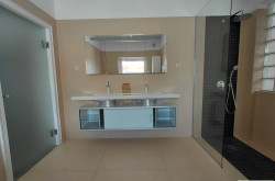 Das moderne Badezimmer überzeugt mit: