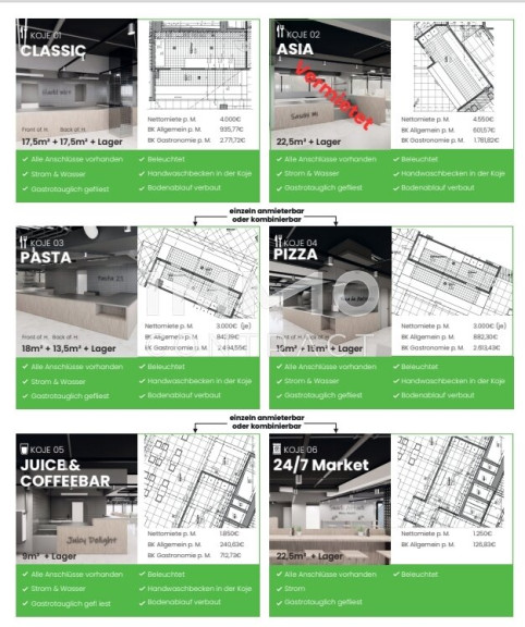 - Food-Court 2: Nutzen Sie die Gelegenheit, Ihre kulinarischen Ideen in einem weiteren Food-Court zu verwirklichen.