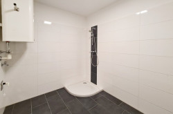 - Badezimmer mit verglaster Dusche und WC