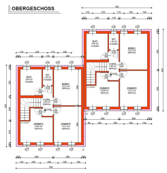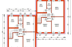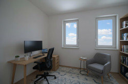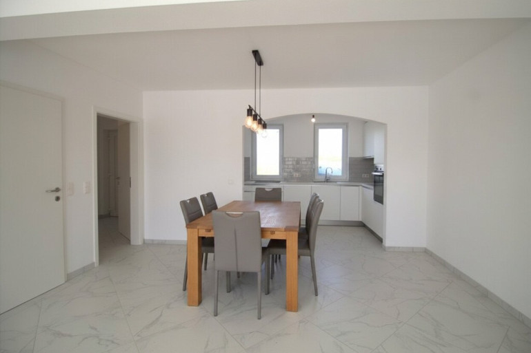 Das Erdgeschoss ist offen gestaltet - offener Küchen-, Ess- und Wohnbereich. Der Technikraum befindet sich imErdgeschoss beim Eingangsbereich. Vier weitere Zimmer befinden sich im Obergeschoss, wo sich auch das Badezimmer mit Fenster und ein extra WC (auch mit Fenster), befinden.