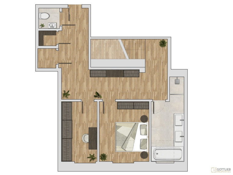 + ca. 8,78 m² Tageslicht-Wannenbad mit separater Dusche und Doppelwaschbecken