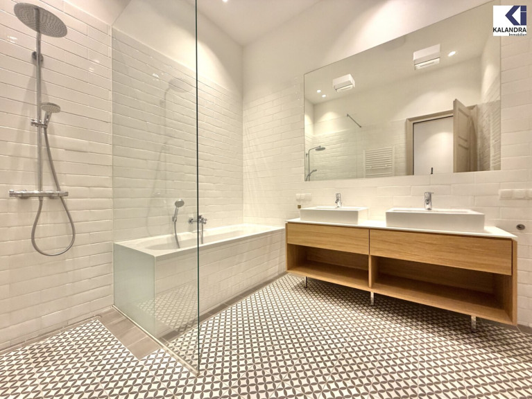 zentraler Vorraum, großes Wohnsalon mit verglaster Loggia (ca. 9m²), drei weitere Zimmer, Küche, Badezimmer mit Wanne, Dusche und Doppelwaschbecken, Duschbad , Gäste-WC, Abstellraum.