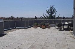 Wenn Sie die offene Treppe ins Obergeschoss nehmen, eröffnet sich Ihnen sofort der herrliche Blich auf die große Dachterrasse. Hier befindet sich ein Schlafzimmer und ein Badezimmer.