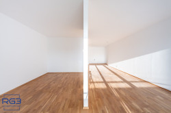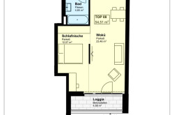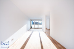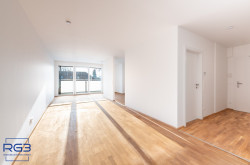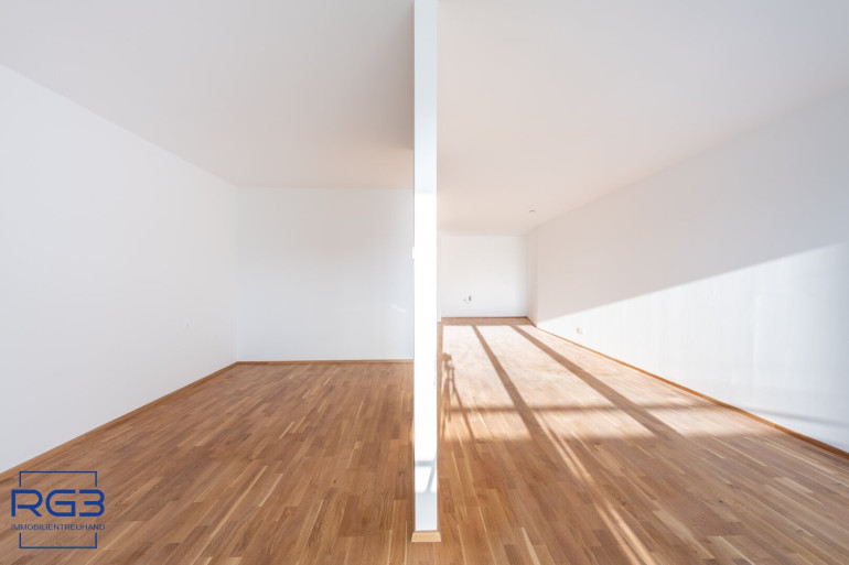 Geradeaus öffnet sich der Wohnbereich. Hier geht der Küchenraum fließend in das großzügige Wohnzimmer über. Der Raum ist angenehm geplant, hell und sehr gut möblierbar. In das Schöafzimmer gelangen Sie fliesend vom Wohnzimmer. Ob Wohnzimmer oder Schlafzimmer, Sie gelangen direkt auf die Loggia mit einem wunderbaren Blick in den Südwesten Richtung Alte Donau, zu der Sie nur ca. 170m Gehweg haben.
