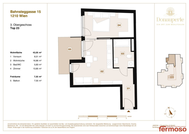 Im hochwertigen Neubauprojekt „Donau Perle“ in der Bahnsteggasse 15 erwartet Sie eine durchdacht geplante 4-Zimmer-Wohnung mit idealer Raumaufteilung und moderner Ausstattung. Diese charmante Einheit überzeugt durch ihre helle Wohnküche, den komfortablen Balkon und ein stimmiges Wohnkonzept – perfekt für Singles, Paare oder Anleger.