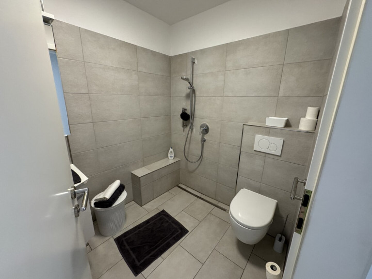 - Badezimmer mit begehbarer Dusche