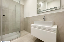 - Badezimmer mit bodenebener Dusche und WC