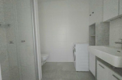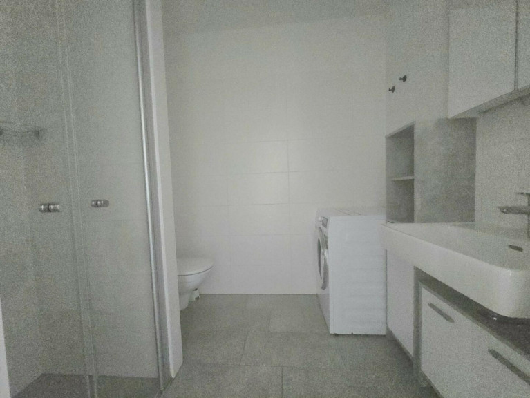 Das Badezimmer wurde mit einer begehbaren Dusche und einem WC, sowie einer Waschmaschine ausgestattet.