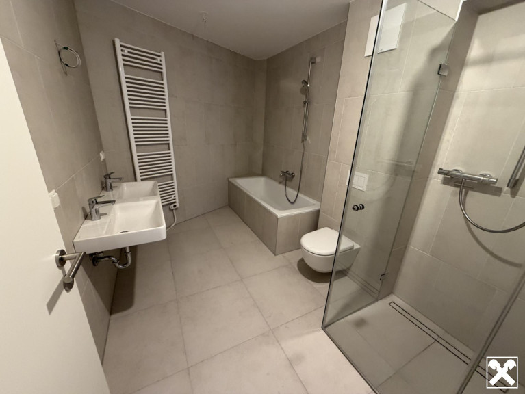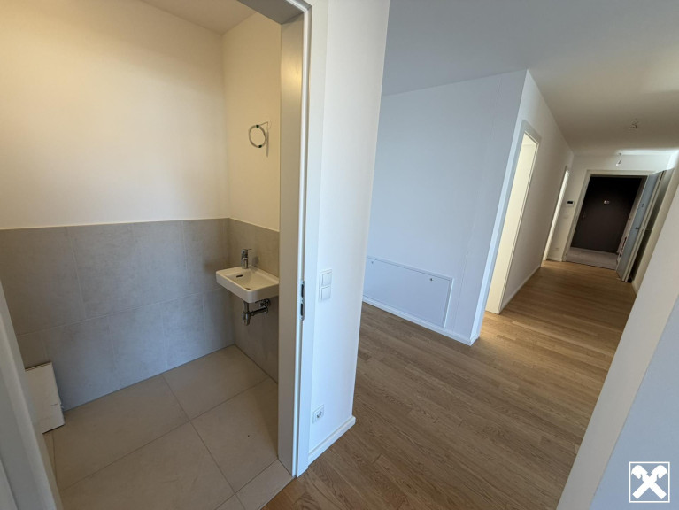 Zwei gut proportionierte Zimmer bieten vielseitige Nutzungsmöglichkeiten – ob als Schlafzimmer, stilvolles Homeoffice oder Gästezimmer. Ein elegantes Badezimmer, ein separates WC sowie ein praktischer Abstellraum sorgen für zusätzlichen Komfort im Alltag.