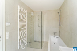 - Großformatige Feinsteinzeugfliesen in den Nassräumen