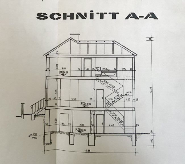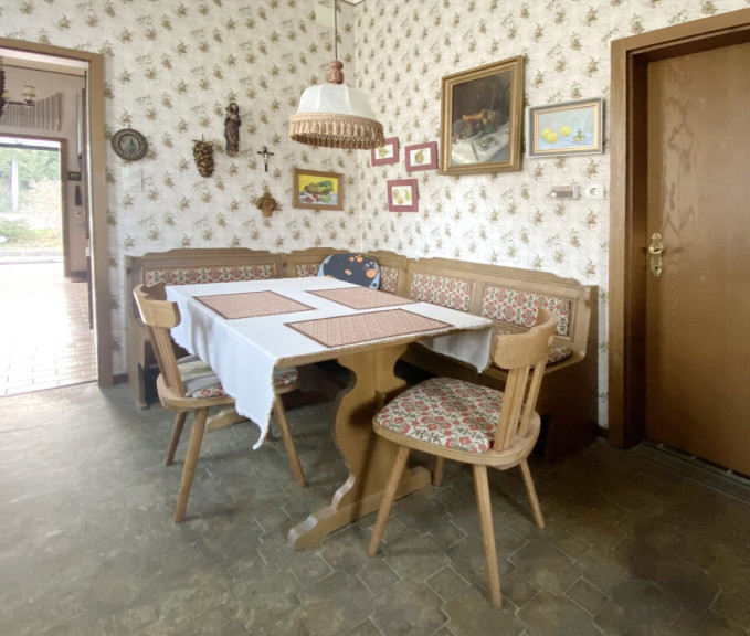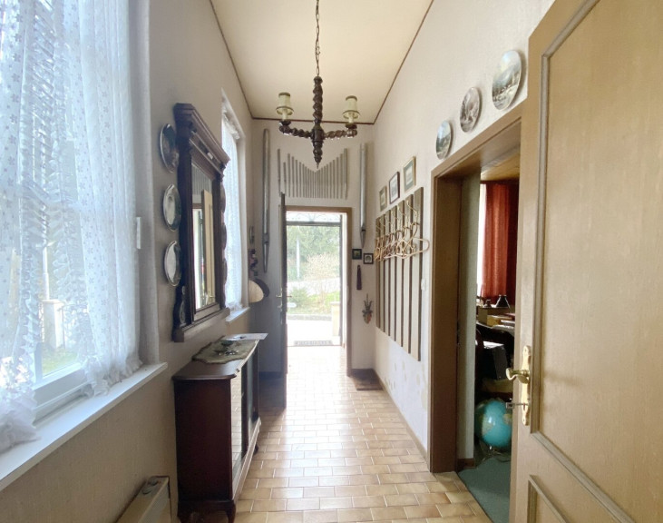 Zum Verkauf gelangt ein sehr gepflegtes und solides Einfamilienhaus mit 5 Zimmern und ca. 154 qm Wohnfläche auf 2 Ebenen mit einem ca. 74 qm großen Keller und mit einem ca. 541 qm großen Garten. Das Haus wird mit jeweils einem Kachelofen in jeder Ebene und / oder einer Elektroheizung beheizt. Es gliedert sich in:
