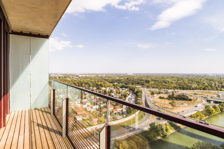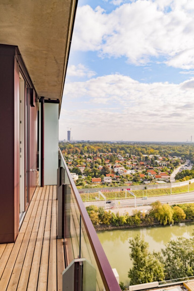 Ausstattung und Komfort: Diese Wohnung beeindruckt mit Echtholzparkett, dreifachverglasten Fenstern, einer topmodernen Küche sowie stilvollen Badezimmermöbeln. Die raumhohen Fensterfronten schenken Ihnen einen beeindruckenden Ausblick über die Wiener Stadtlandschaft. Fußbodenheizung und -kühlung sorgen zu jeder Tageszeit für eine angenehme Raumtemperatur.