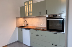 Schlafzimmer, Wohnzimmer mit offener Einbauküche, Vorzimmer,