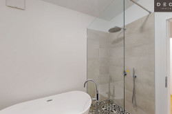 Badezimmer – hochwertig ausgestattet mit freistehender Badewanne, Dusche und Handwaschbecken