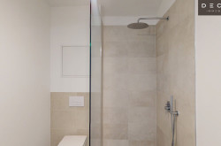 Badezimmer – modern ausgestattet mit Dusche, Handwaschbecken und WC