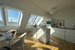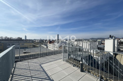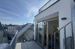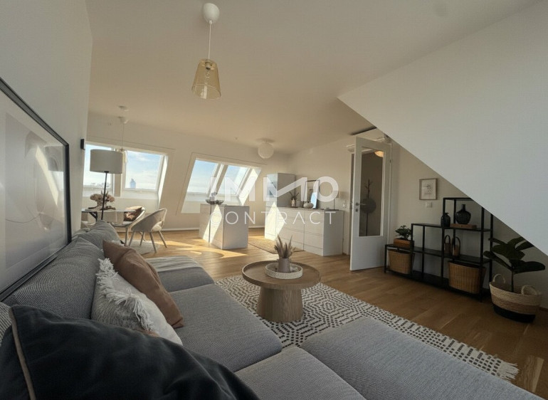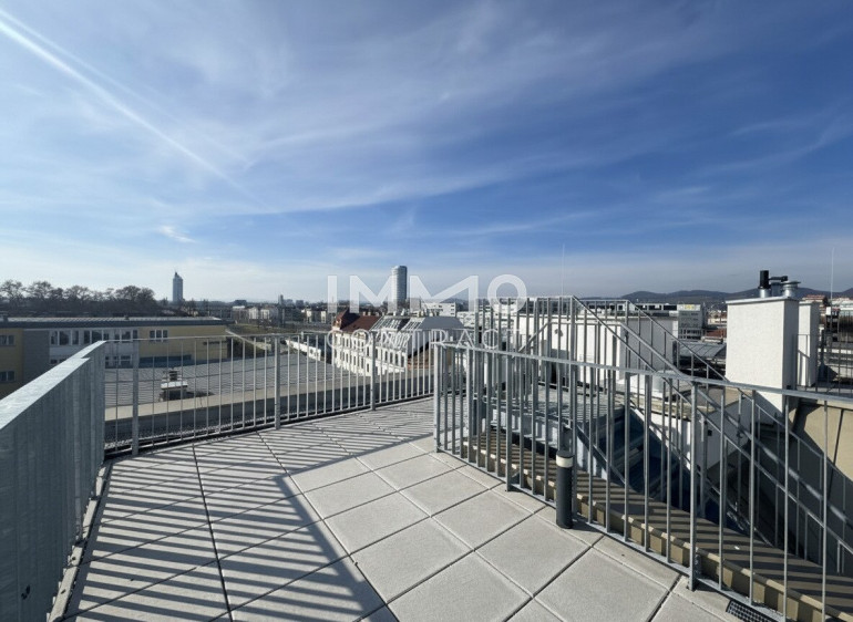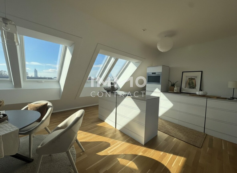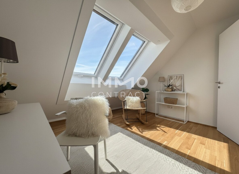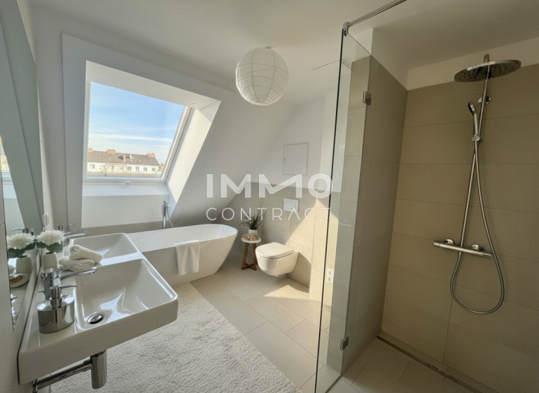 Willkommen in Ihrem neuen Zuhause: Diese großzügige, zentral begehbare 3-Zimmer-Dachgeschoßwohnung überzeugt mit rund 98 m² Wohnnutzfläche, einer Terrasse auf Wohnebene sowie einer privaten Dachterrasse mit beeindruckendem Rundumblick. Großflächige Dachfenster durchfluten die Räume mit natürlichem Licht, während Klimasplitgeräte in jedem Zimmer auch an heißen Sommertagen für angenehmen Wohnkomfort sorgen. Die rund 45 m² große, durchgesteckte Wohnküche mit Nord-Süd-Ausrichtung und direktem Terrassenzugang bildet das Herzstück der Wohnung und ermöglicht ideales Querlüften. Zwei weitere Zimmer, ein großzügiges Badezimmer mit freistehender Badewanne, Dusche und Doppelwaschtisch, ein Gäste-WC sowie ein praktischer Abstellraum runden dieses exklusive Wohnangebot in verkehrsberuhigter Lage perfekt ab.