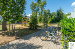 Zusätzliches Raumangebot schaffen die Einlagerungsräume, die jeder Wohnung zugeordnet sind sowie die Fahrradräume im Kellergeschoss und die Kinderwagenräume im Erdgeschoss.