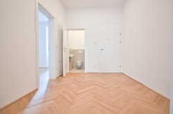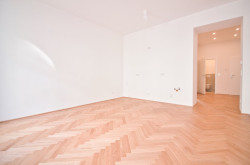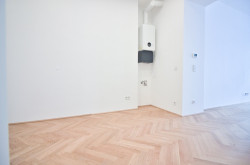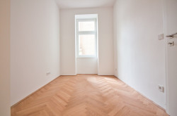 Die westseitige Wohnküche mit knapp 22 m² lässt keine Wünsche offen: Platz für einen Essbereich, für eine gemütliche Couchlandschaft und eine offene Küche ist ausreichend vorhanden. Die Wohnung überzeugt zusätzlich mit wunderschönem Fischgrätparkett, Fußbodenheizung, über 3 Meter hohen Räumen und Kunststoff-Doppelisolierglas-Fenstern.