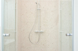 - Badezimmer mit Dusche und Waschtisch