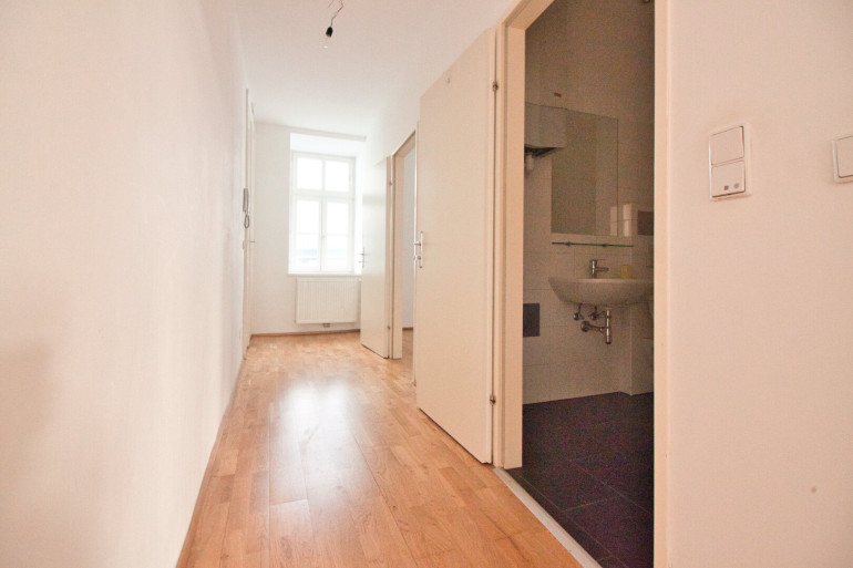Diese wunderschöne Altbau-Wohnung ist in einem guten, gepflegten Zustand. Der Vorraum bietet viel Platz für eine Garderobe und zum Ankommen. Er erschließt ein ca. 10 m² großes Schlafzimmer sowie ein Badezimmer. Dieses verfügt über einen Waschtisch, eine Badewanne, einen praktischen Handtuchheizkörper und bietet Platz für eine Waschmaschine.