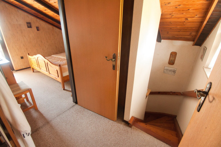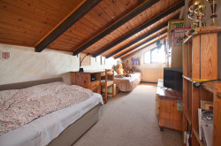 Im Obergeschoss gibt es zwei Zimmer (eines davon mit Balkon und Weitblick über Wien).