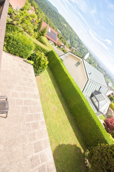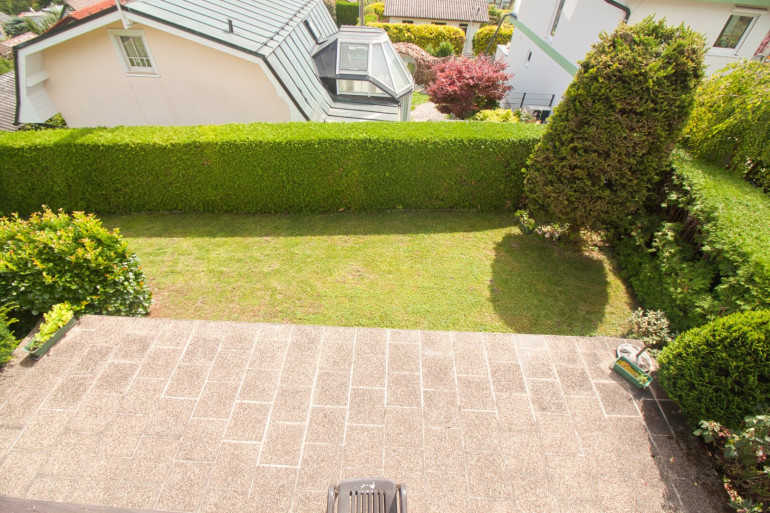Der gepflegte Garten hat eine Fläche von ca. 275 m². Er ist optimal geschnitten und hat eine unnachahmliche Aussicht auf ganz Wien. Ein absoluter Traum.