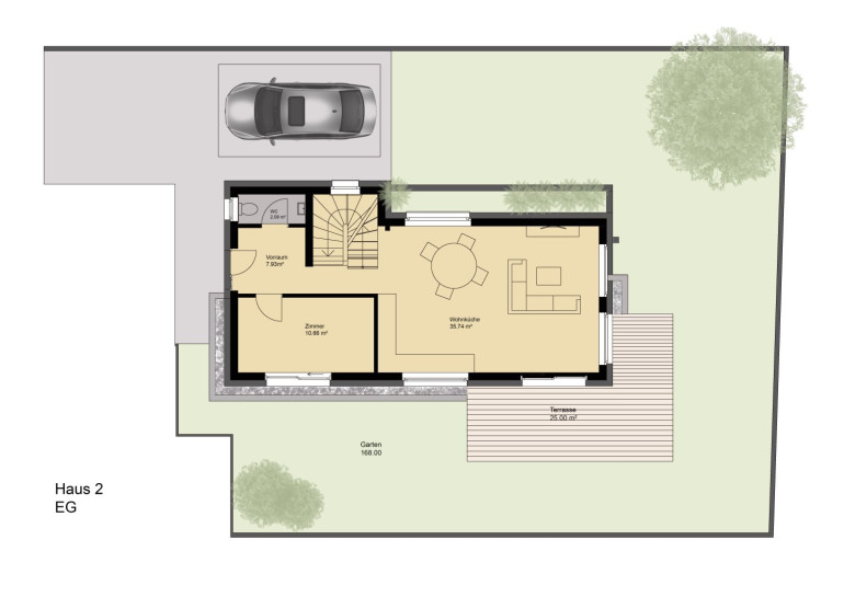 Direkt neben dem Haus befindet sich ein privater Autoabstellplatz mit E-Anschluss.