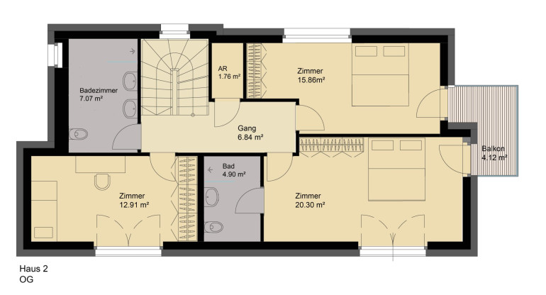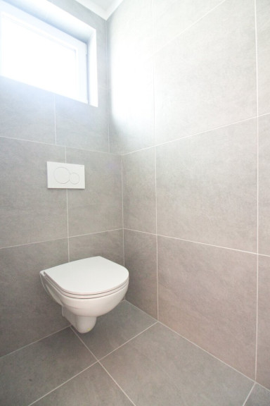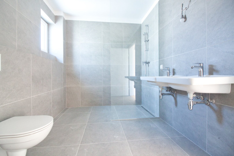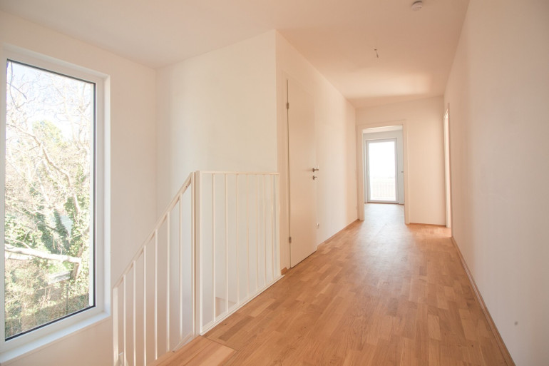 Eine Stiege führt in den 1. Stock, wo drei gut geschnittene Zimmer (ca. 13, 16 und 20 m²) auf Sie warten. Das Geschoss punktet zudem mit zwei modernen Bädern: einem großzügigen Familienbad mit riesiger, bodenebener Dusche, WC und Doppelwaschtisch sowie einem en suite Bad beim größten Schlafzimmer mit Dusche, WC und Waschtisch. Zwei Zimmer haben direkten Zugang zu einem gemütlichen Balkon. Ein praktischer Abstellraum rundet das Angebot im Obergeschoss ab.
