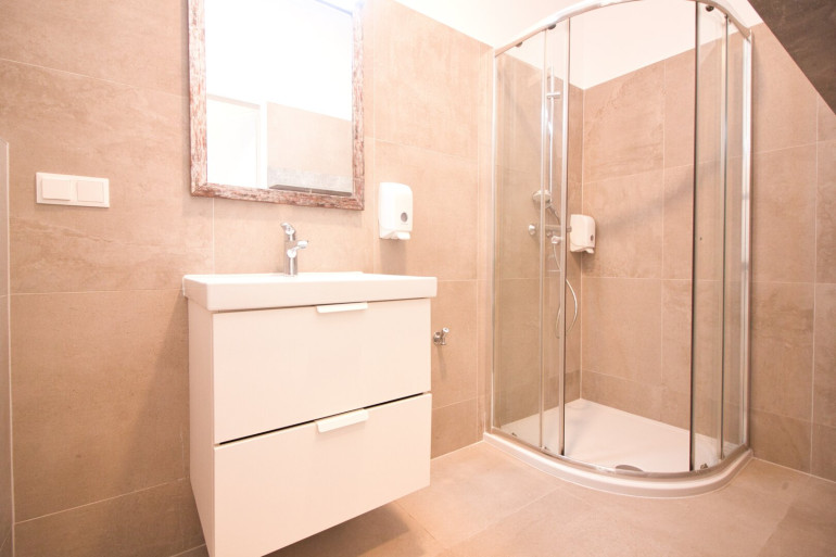 Die Wohnung wird über einen großzügigen Vorraum mit anschließendem Gang betreten, von dem aus alle Räume zentral begehbar sind. Linker Hand befindet sich das Badezimmer mit Waschtisch, Dusche und WC. Rechter Hand liegt das ca. 11 m² große Schlafzimmer.