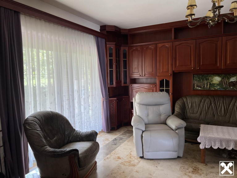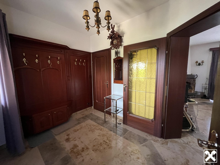 Geboten werden ein Wohnzimmer mit offenem Kamin, Küche, zwei Schlafzimmer, Bad, separates WC sowie eine Terrasse mit großzügigem Garten, Gartenhütte und Brunnen. Ziegelmassivbau, Kunststofffenster und Öl-Zentralheizung sorgen für solide Ausstattung.