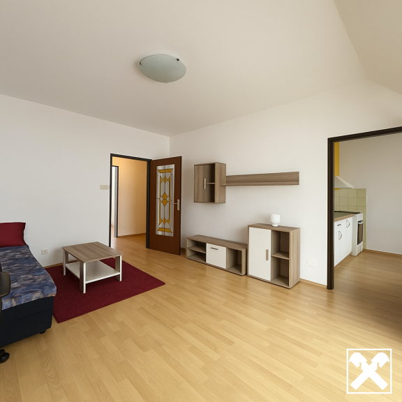 Geräumiges Wohnzimmer + separate Küche + Badezimmer + Schlafzimmer + großer Vorraum + Toilette + Abstellraum + Kellerabteil