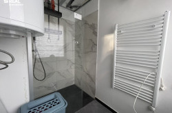 Vor dem Badezimmer befindet sich eine separate Waschküche. Das Badezimmer verfügt über eine Dusche, das WC ist getrennt.