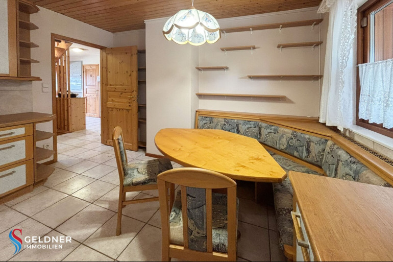 Küche komplett ausgestattet mit praktischer Sitzbank