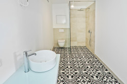 Parkett, Fußbodenheizung, Dusche