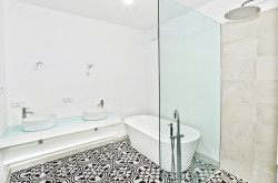 Parkett, Fußbodenheizung, Badewanne, Dusche