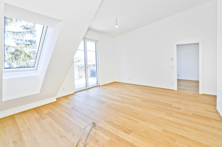 3 Zimmer im neu ausgebauten Dachgeschoß, großer gartenseitiger Balkon, Grünblick - zu mieten 1130 Wien