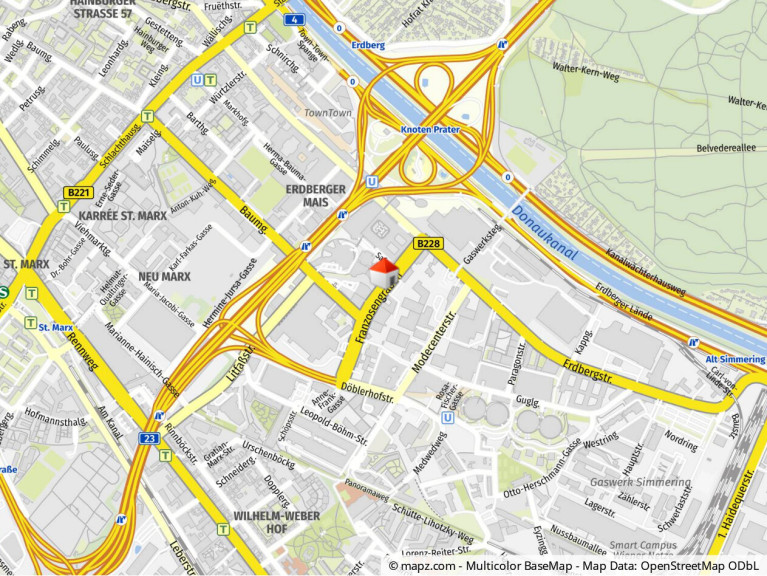 Öffentliche Anreise 2-3 Minuten Fußweg zur U3 Station Erdberg 1 Station bis zum Gasometer/Gasometer City 6 Stationen bis zum Stephansplatz Anreise mit dem PKW Über die Südost-Tangente A23, Abfahrt St. Marx Über die A4 in nur 15 Minuten zum Flughafen Über die Erdberger Lände/Schüttelstraße in 7-10 Minuten ins StadtzentrumBeschreibung der Immobilie