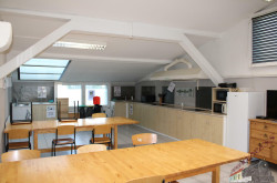 Es steht eine große Küche mit Speisesaal zur Verfügung, welche alle Beherbergungsnutzer mitbenützen können.